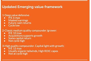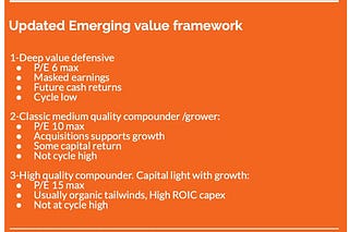 After some changes in stock valuations and movements, I will revisit the deep value segment of my framework, last presented in July.